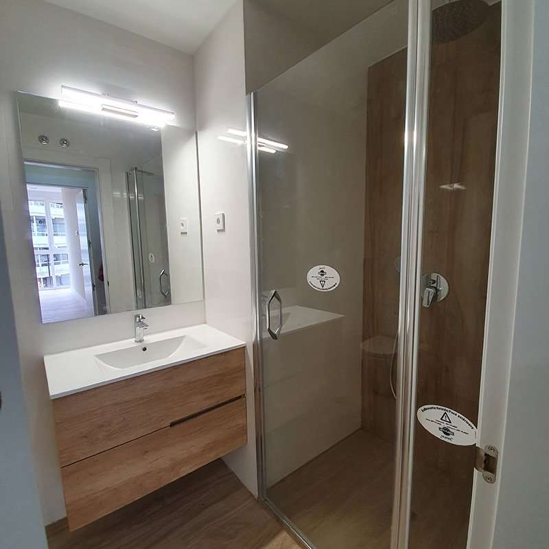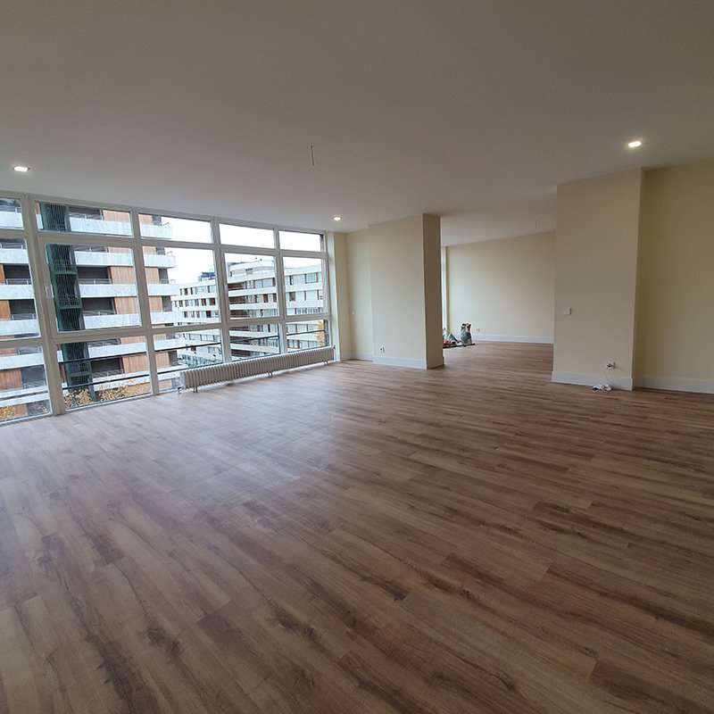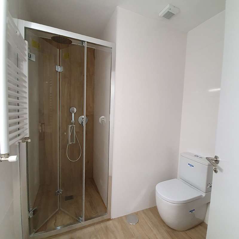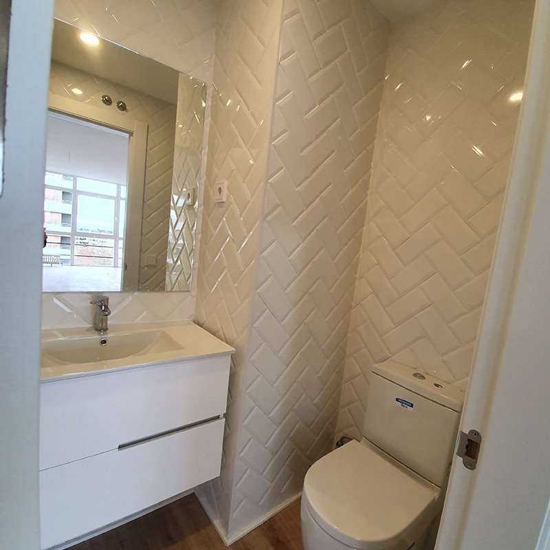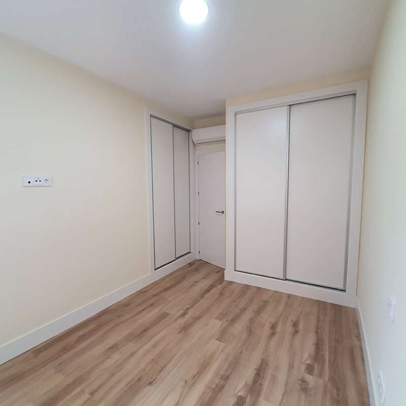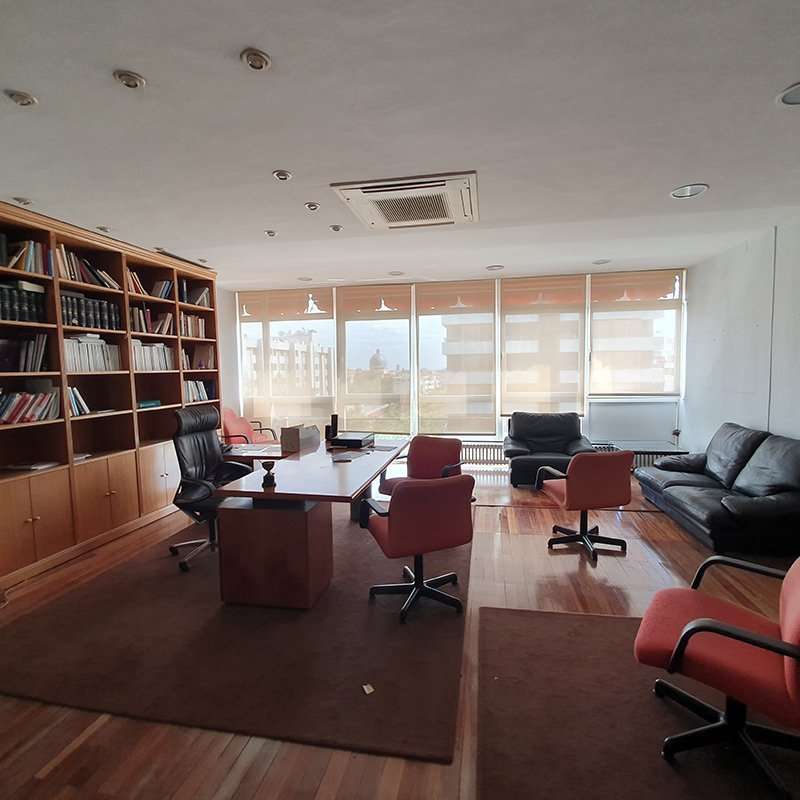 Cambio radical de un despacho de oficinas a una vivienda unifamiliar en el centro de Madrid. Con la reforma se puede ver la amplitud de la vivienda con sus grandes ventanales que dan luminosidad a la estancia. El lacado blanco de los muebles, puertas y armarios dan ese toque elegante y que hace contraste con el color de la encimera.