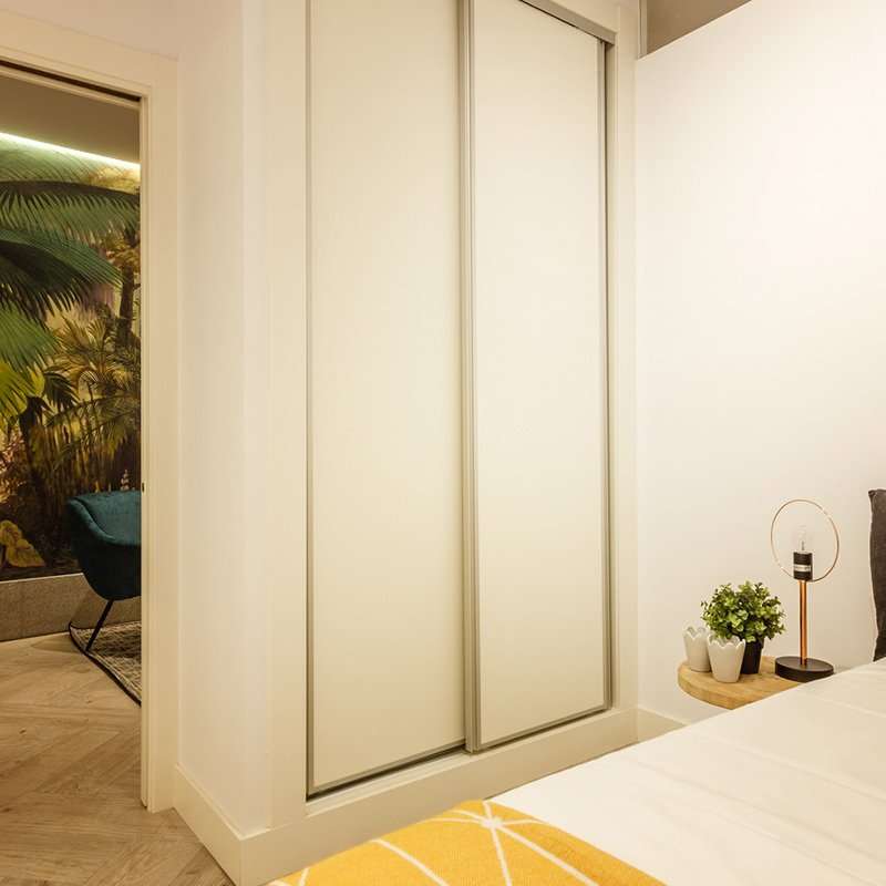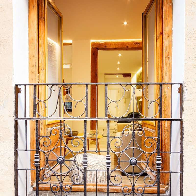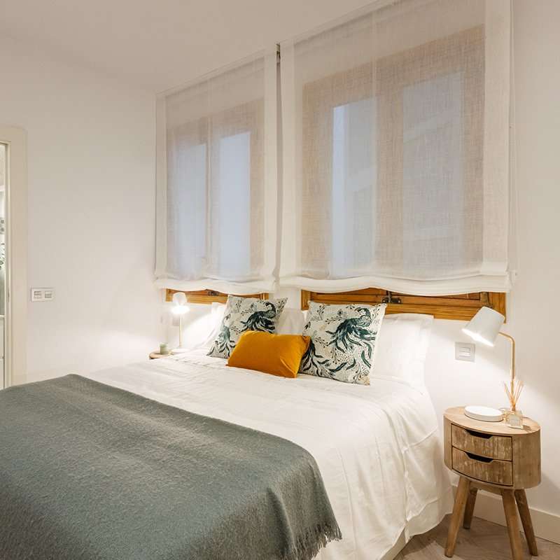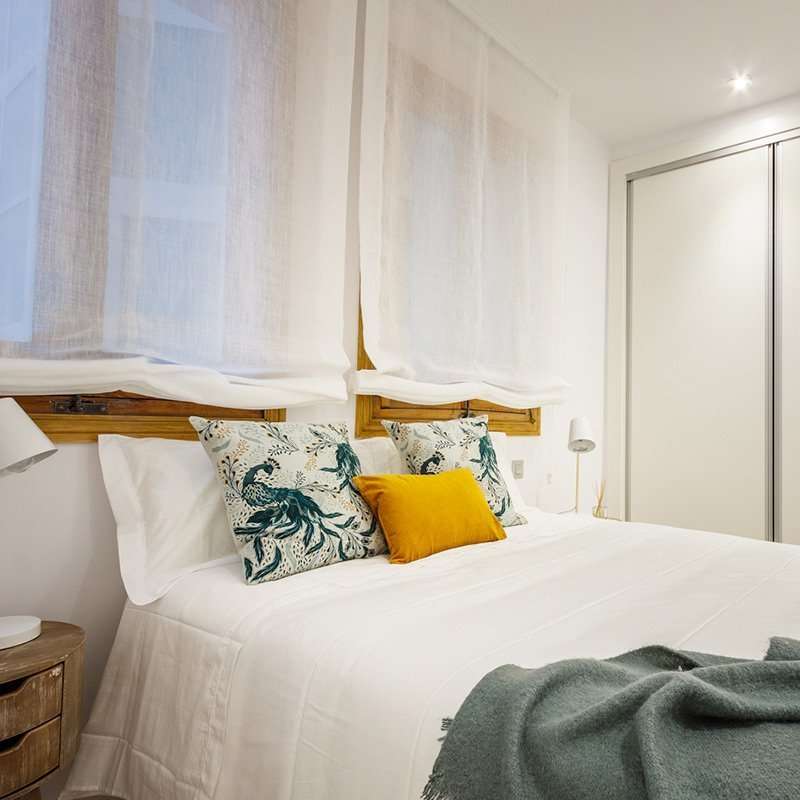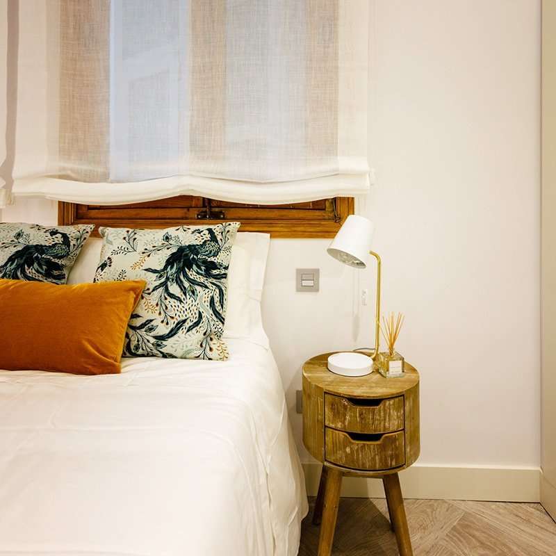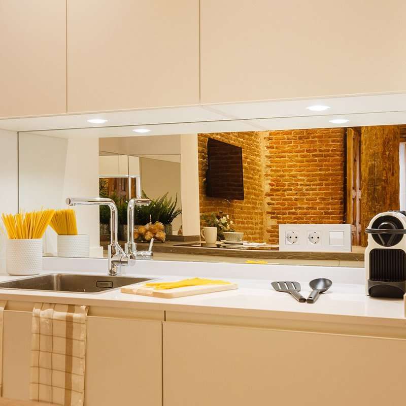 Reforma de una pequeña vivienda en el centro de Madrid. Aun siendo un pequeño espacio se consiguio sacar mucho provecho a la vivienda, ademas de conseguir un aspecto rústico y sensación de amplitud con el color blanco conjugado con el ladrillo visto y las vigas de madera.